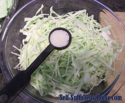 Check often during the first day or so to make sure the cabbage is in fact under the liquid and the lid remains loose. The amount of time until the sauerkraut is complete varies. It could be a few days or a week or so. Start checking flavor after 3 days. Once the desired result has been achieved, remove the weight and replace the lid tightly. Store in a cool place or refrigerator.
